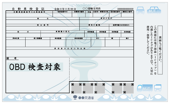 ※ 車検証備考欄に、「OBD検査対象」の記載があります。